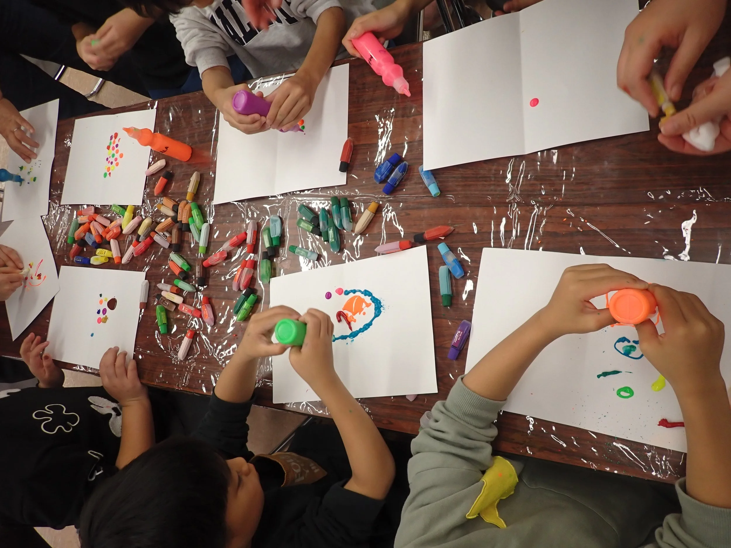 横浜こどもホスピスからのご依頼で、病児の”きょうだい”児にアートワークショップを実施しました。思いっきり大きな紙にみんなで一つの作品を作った後は、「やさしさの花」作品作り。開く度に歓声が湧き上がり、みんなそれぞれ自分なりの「やさしさの花」を咲かせました。